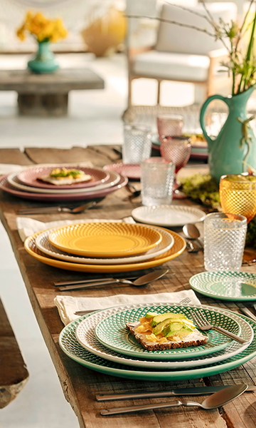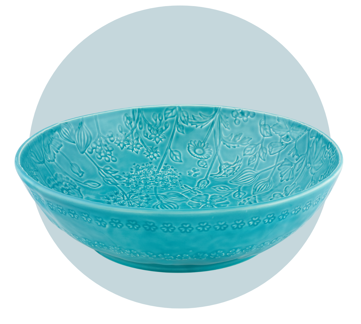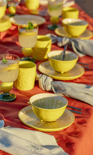 Referencia mundial de la moda, Claudia Schiffer combinó su gusto por la campiña inglesa y las mariposas con la identidad de Bordallo Pinheiro, creando piezas de gran elegancia y sensibilidad.